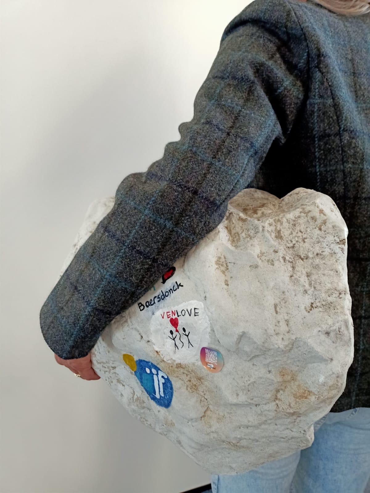 Deze foto kwam bij ons binnen. Op Keipositief XXL is inmiddels ook al de signatuur van VIJF uit Roermond te zien. Maar wie heeft Keipositief XXL hier onder de arm? En wat betekent dat?!? En waarom wil elke gemeente deze kei zo graag omarmen?